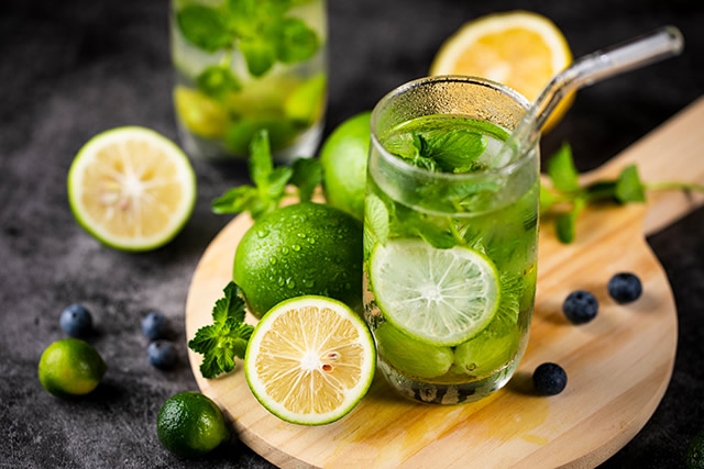 莫吉托(Mojito)是一种由五种材料制成的鸡尾酒,为最有名的朗姆调酒之一,起源于古巴。莫吉托天调配原料有淡朗姆酒、糖(传统上用甘蔗汁)、莱姆(青柠)汁、苏打水和薄荷,最原始的古巴配方是使用留兰香或古巴岛上常见的柠檬薄荷。